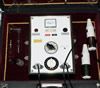 This Violet Wand / Violet Ray is sensational - a very large case lovingly restored using a hard wearing faux leather case covering. The interior is in a rich maroon cotton velvet with gold interior beading. It really does give the impression that you have bought the ultimate in restored violet wands The control unit is a classic of 1950s/1960s design - with TWO hand pieces, each can be plugged in and used seperately or both TOGETHER POWER is controlled by the large dial on the fascia and for the technically minded controls rheostat / potentiometer. There is also a smaller switch which also moderates the power, from low / medium / high. . Sensations therefore cover a wide range from low to high, with the power dial for fine tuning. There is a metal plate in the wand handle which provides a return path for the wand output and if the user apply's their free hand to the recipient, they can see sparks flying from their fingertips. The metal rod operates in the same way only the recipient is meant to hold this to slightly increase the intensity of the wand output or to draw the current across selected parts of the body. PLUS - There is a Timer for keeping track and an Ammeter to indicate power usage. Naturally we carried out a full electrical restoration with new cables, double insulating all the internal wiring, replaced ALL the capacitors including those which isolate the metal hand piece coverings and re tuned and tested extensively. The high voltage coils in the hand piece were also vacuum potted. The device works better on the 220V setting so we will provide a small step up tranformer for our North American customers. |